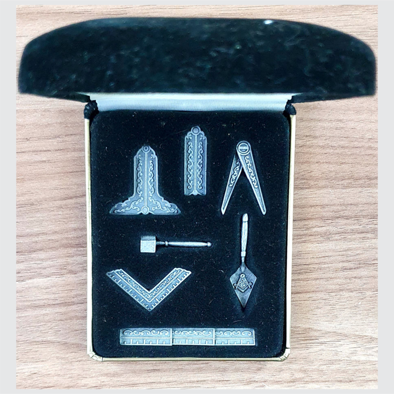Estojo com Miniaturas dos Instrumentos do Mestre Maçom
